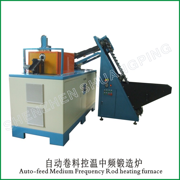 M.F. forging furnace is used for the heating of bars and rods larger than Φ12, the material can be steel, stainless steel, copper, brass ,aluminium and so on. The heating can be the whole rod, end of the rod or dle part of the rod.