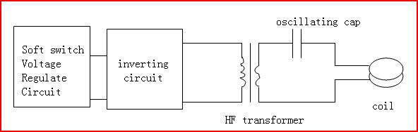 In These series machines, series oscillating circuit is applied, through high frequency transformer, low voltage and high current power is output to go through the induction coil. The main oscillating structure is as follows:
