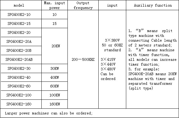 1. SPG400K and SPG400K2 machines are basically the same and have the same output and heating acteristics.