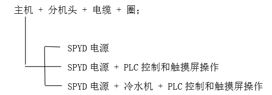 主機(jī)主要部分為SPYD電源,但也可以包含冷水機(jī); 控制面板可以是最簡單的操作面板,也可以是PLC控制和觸摸屏操作面板, 我們目前主要提供上述三種主機(jī)形式。