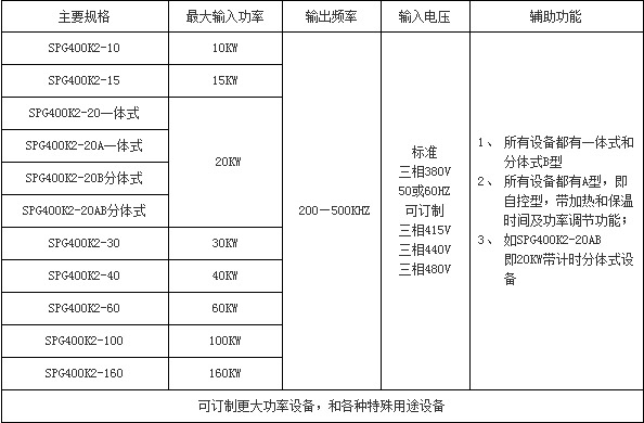 2、 在分體式設(shè)備中,高頻電源(主機(jī))與高頻變壓器(分機(jī))分離,主—分機(jī)間連線2米長(zhǎng); 但主-分機(jī)連線會(huì)降低設(shè)備的輸出頻率,產(chǎn)生一定的損耗。