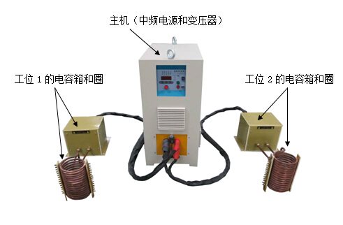 基本組成為:(中頻電源 + 中頻變壓器) + 小電容箱 + 感應(yīng)圈。