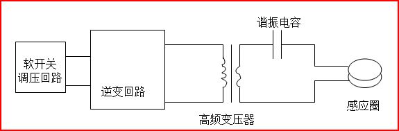 此系列設(shè)備采用串聯(lián)諧振電路,諧振后通過高頻變壓器輸出低電壓、大電流的高頻電源。諧振結(jié)構(gòu)如圖: